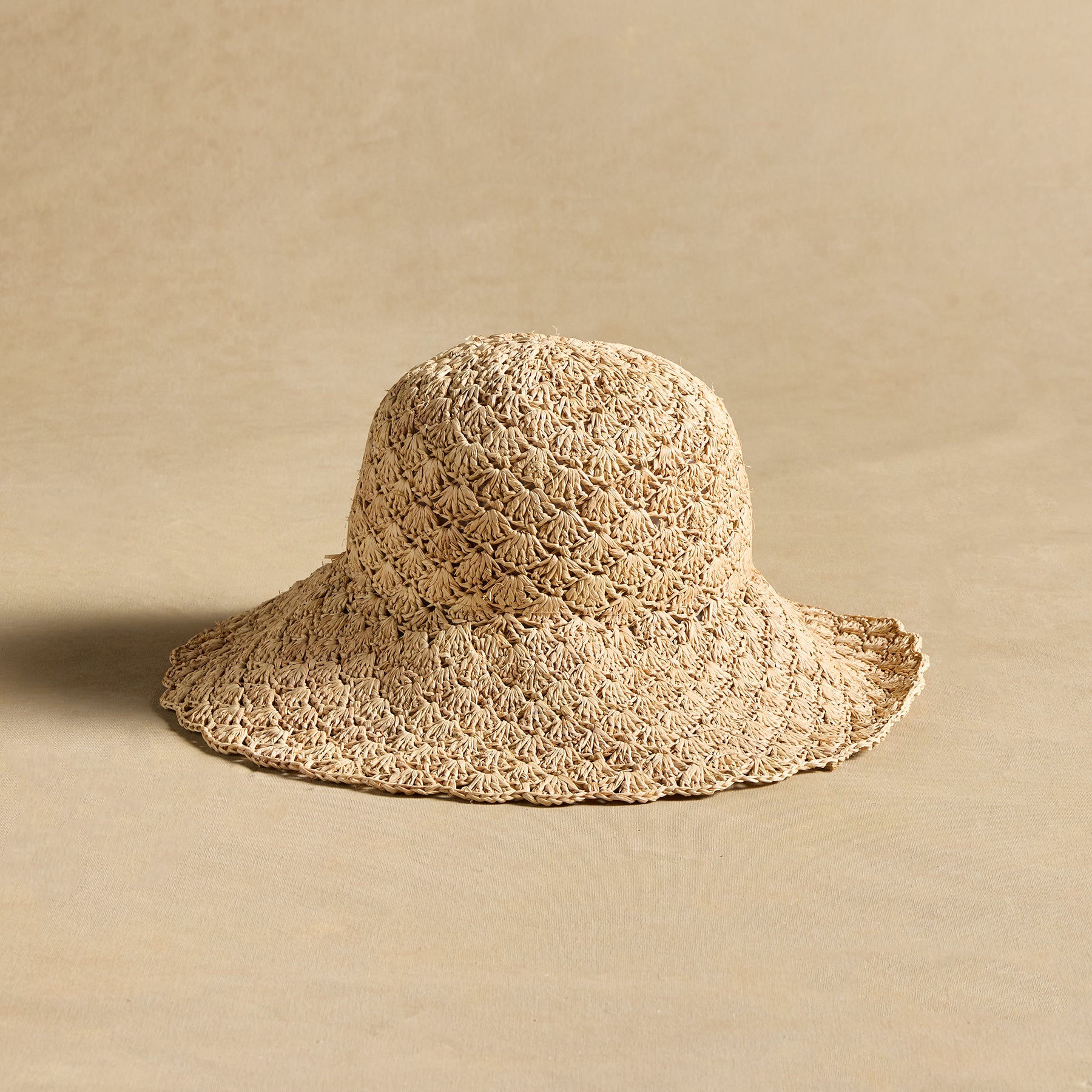 Our breathable. handwoven Louetta Bucket Hat provides excellent sun protection and alluring feminine style. Spot clean. Imported. 22.25 dia. x 4.5w brim x 4.25h with size adjuster inside sweatband.