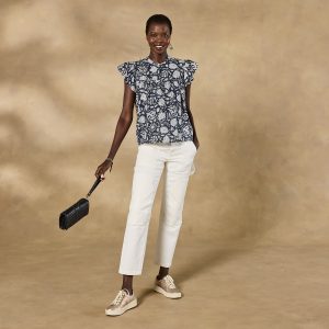This light-as-air pullover top is crafted of the softest laundered cotton with a vintage-inspire floral print—plus flirty flutter sleeves and subtle smocking details. Machine wash. Imported. Sizes XS (0–2). S (4–6). M (8–10). L (12–14). XL (16–18). XXL (20–22). Approx. 24.25l.