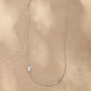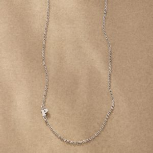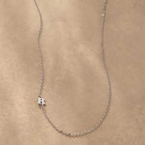 Elegance with a personal touch. Our necklace is handcrafted with upper-case serif letters A to Z. Sterling silver chain and lobster clasp; rhodium-plated sterling silver letters. Made in USA. 17l.