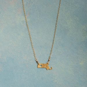 Celebrate your favorite state with our 18kt gold-plated charm strung on a 14kt gold-filled chain. A cut-out heart shows your love. Lobster clasp. Handcrafted. Exclusive. 17-18l